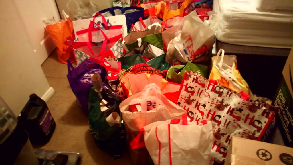 Donated food items for Christmas.